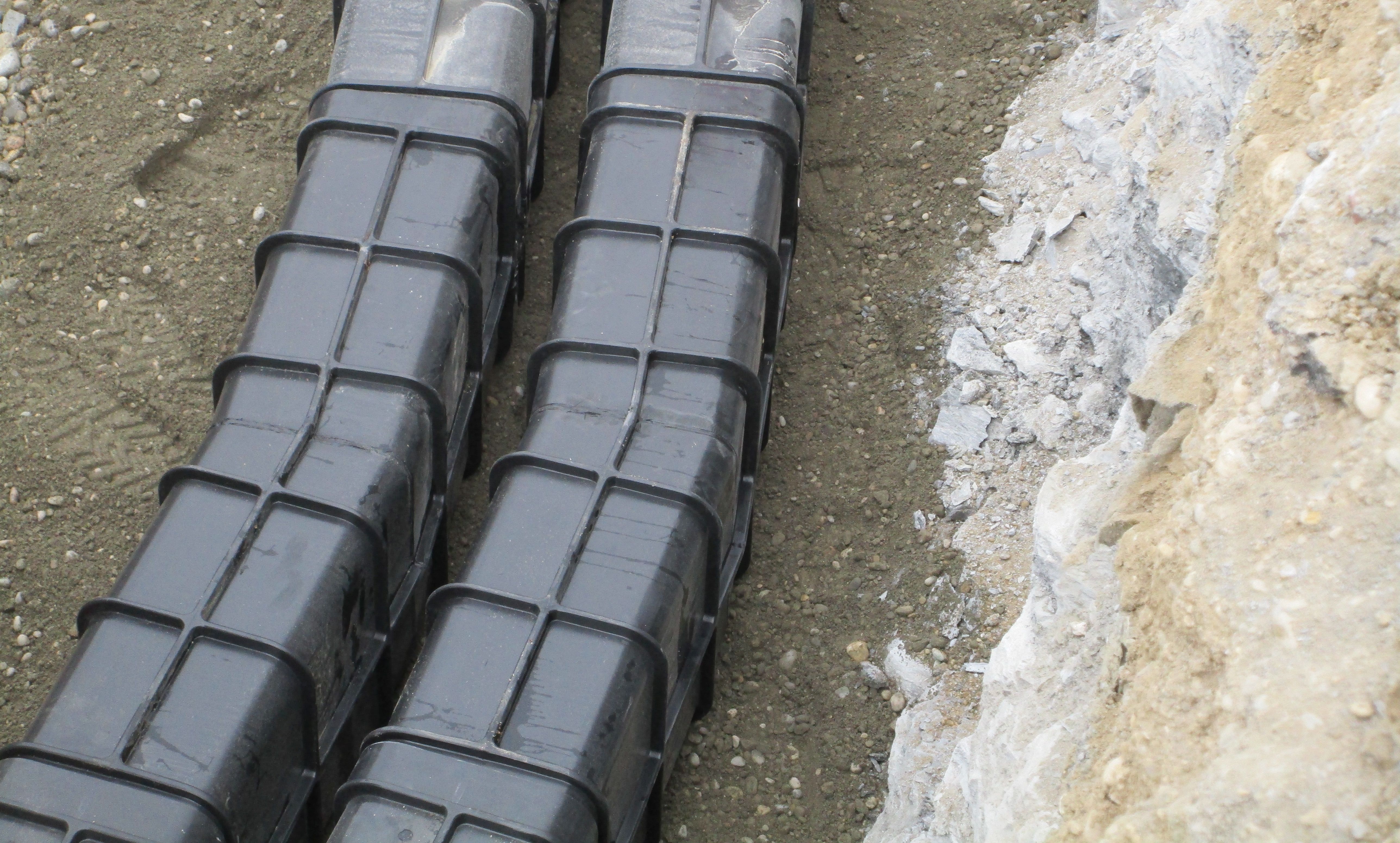 MEGA-kabelkanalenes høye styrke gjør at de kan graves ned, legges direkte på overflaten eller støpes inn i betong.